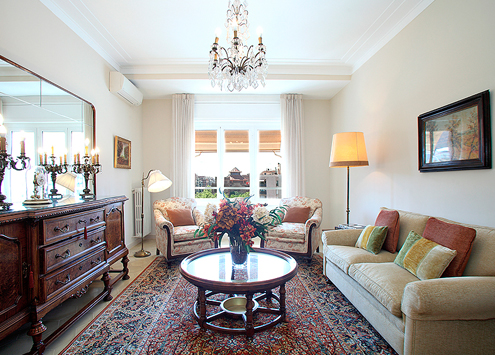 Piso clásico, con piezas y muebles antiguos cuidadosamente restaurados. Luminoso con vistas Montjuich. Totalmente reformado, todos los muebles han sido restaurados con mucho cariño para poder conservar su antigüedad y elegancia. Prácticamente todo exterior y con mucha luz.
